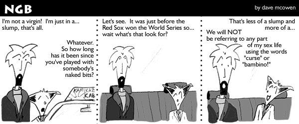 June 27, 2010 - Hi everyone! Yes I know I've been gone for a long time, and unfortunately (or fortunately) I'm not going to ply you with promises of the continuing shenanigans of Nice Guy and Dingo. It may happen; it may not. Too soon to tell. But I did want to send out a great big thanks for putting Nice Guy But over the 1,000,000 page view mark! I never expected my little creative self-medication project would reach so many people. Thanks!