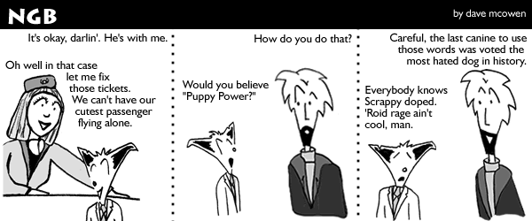 June 27, 2010 - Hi everyone! Yes I know I've been gone for a long time, and unfortunately (or fortunately) I'm not going to ply you with promises of the continuing shenanigans of Nice Guy and Dingo. It may happen; it may not. Too soon to tell. But I did want to send out a great big thanks for putting Nice Guy But over the 1,000,000 page view mark! I never expected my little creative self-medication project would reach so many people. Thanks!