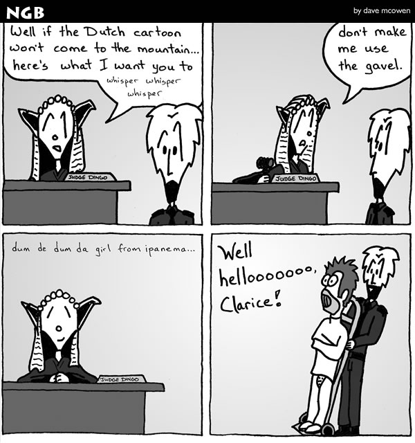 June 27, 2010 - Hi everyone! Yes I know I've been gone for a long time, and unfortunately (or fortunately) I'm not going to ply you with promises of the continuing shenanigans of Nice Guy and Dingo. It may happen; it may not. Too soon to tell. But I did want to send out a great big thanks for putting Nice Guy But over the 1,000,000 page view mark! I never expected my little creative self-medication project would reach so many people. Thanks!