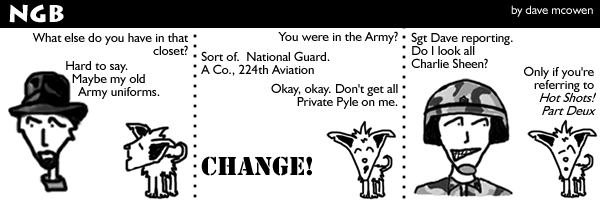 June 27, 2010 - Hi everyone! Yes I know I've been gone for a long time, and unfortunately (or fortunately) I'm not going to ply you with promises of the continuing shenanigans of Nice Guy and Dingo. It may happen; it may not. Too soon to tell. But I did want to send out a great big thanks for putting Nice Guy But over the 1,000,000 page view mark! I never expected my little creative self-medication project would reach so many people. Thanks!